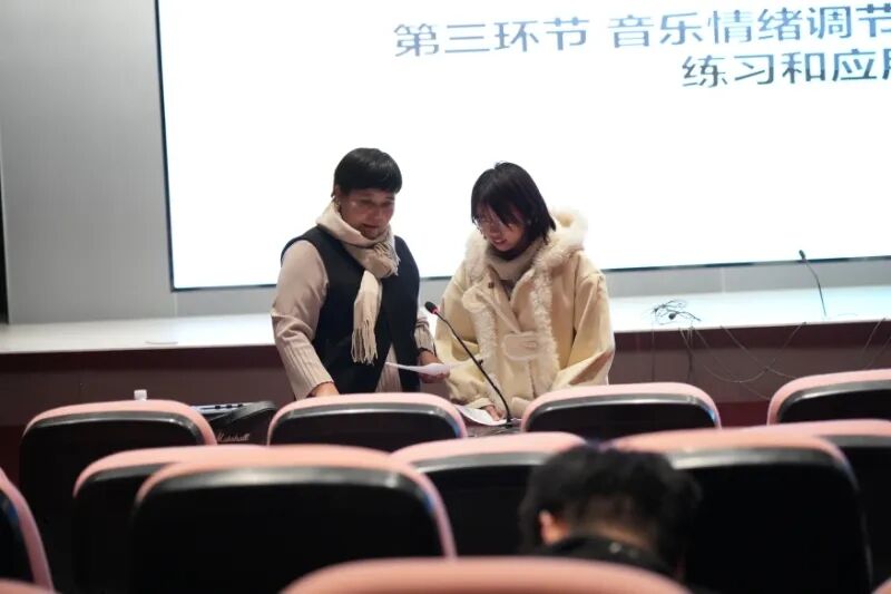 作為綜合類藝術(shù)院校,山東藝術(shù)學(xué)院充分發(fā)揮音樂(lè)治療等專業(yè)特色,將學(xué)科優(yōu)勢(shì)融入心理健康教育工作。本次講座在延續(xù)以往理論知識(shí)講解的基礎(chǔ)上,進(jìn)一步強(qiáng)化了“音樂(lè)情緒調(diào)節(jié)方法”的實(shí)踐教學(xué)與現(xiàn)場(chǎng)掌握環(huán)節(jié),著力提升學(xué)生的實(shí)際應(yīng)用能力。講座緊密圍繞入學(xué)初期學(xué)生常見(jiàn)的心理適應(yīng)議題,設(shè)置“成長(zhǎng)與調(diào)適”、“音樂(lè)與情緒”、“心理工具箱構(gòu)建”三大板塊,通過(guò)系統(tǒng)講解與沉浸式體驗(yàn)相結(jié)合的方式,引導(dǎo)學(xué)生在聆聽(tīng)、互動(dòng)與分享中掌握音樂(lè)情緒調(diào)節(jié)的操作方法與實(shí)用技巧,切實(shí)增強(qiáng)心理自助能力。
