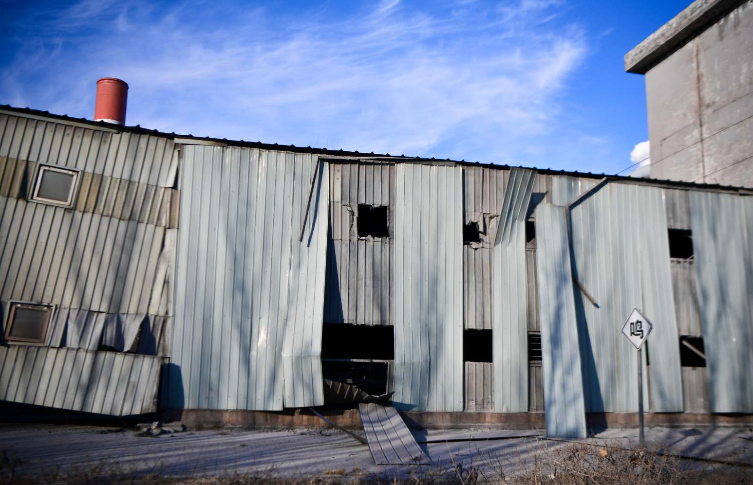 圖為1月19日下午,廠區(qū)內(nèi)部分廠房結(jié)構(gòu)變形。記者 吳勇 攝