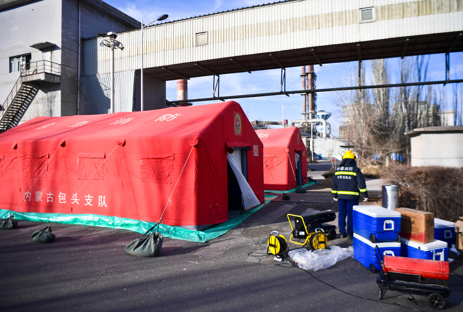 圖為1月19日下午,廠區(qū)內(nèi)救援隊伍帳篷。記者 吳勇 攝