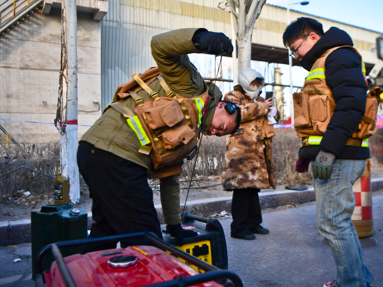 在事故現(xiàn)場可以看到,來自消防、應(yīng)急、公安、醫(yī)療等多支專業(yè)救援隊伍仍在如此寒冷的天氣下,緊張開展排險救援工作,與時間賽跑。目前共有1192人參與救援。