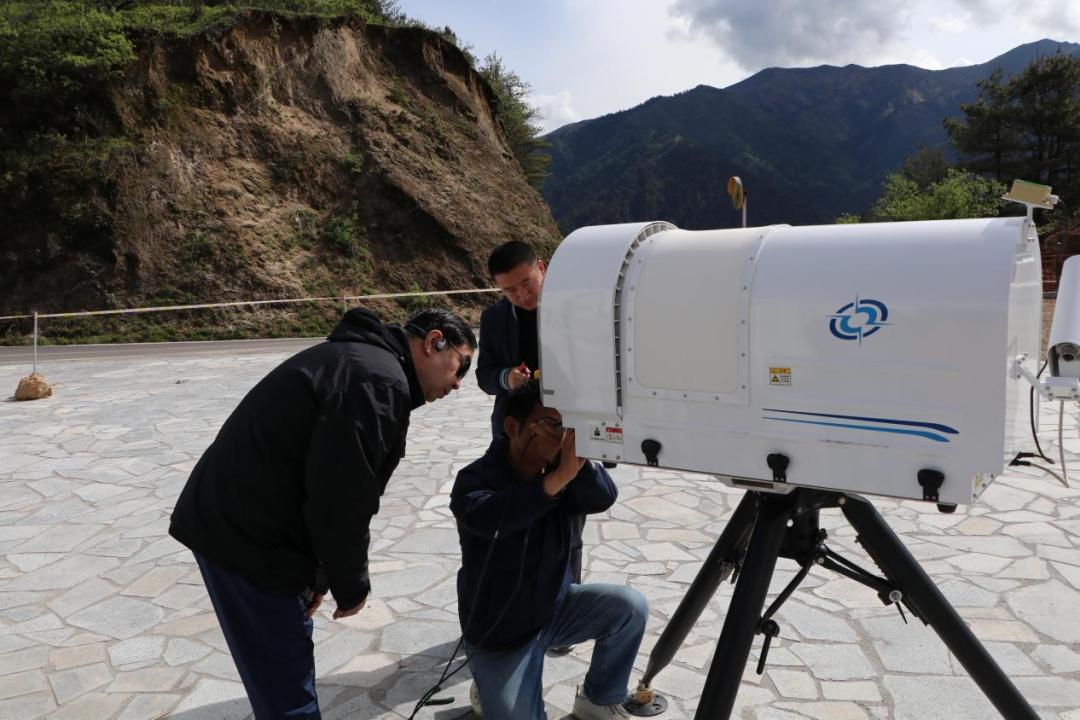 科考隊(duì)員在亞東地區(qū)進(jìn)行大氣粉塵考察,黃建平院士指導(dǎo)調(diào)試激光雷達(dá)
