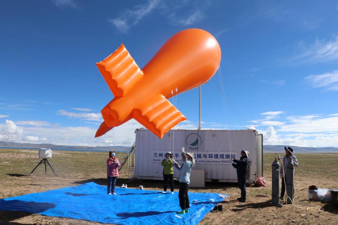 科考隊(duì)員在納木錯(cuò)地區(qū)進(jìn)行探空實(shí)驗(yàn)
