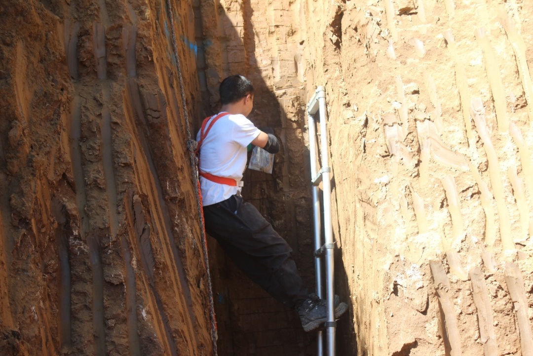 “地表粉塵采樣需要尋找地層清晰、信息完整的剖面,選點(diǎn)必須慎之又慎。有一次在青海玉樹,我們找了三天才找到一個(gè)層次清晰、信號(hào)完整的有代表性的采樣點(diǎn)。最終在當(dāng)?shù)赝诰驒C(jī)師傅的協(xié)助下才順利采樣?!睏顒倮貞浀?。