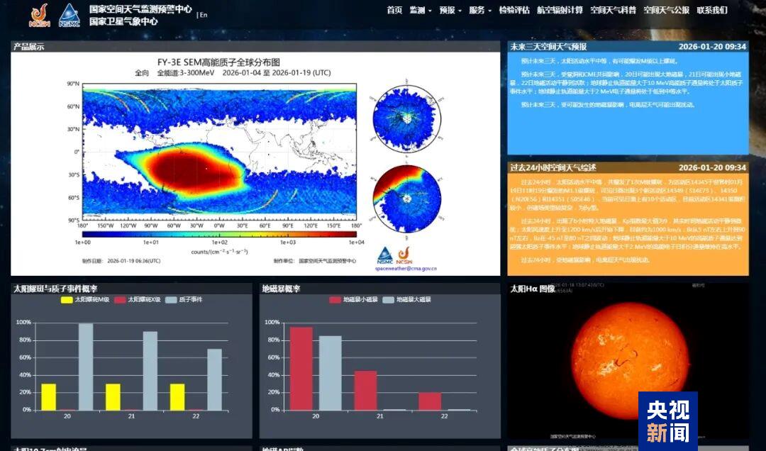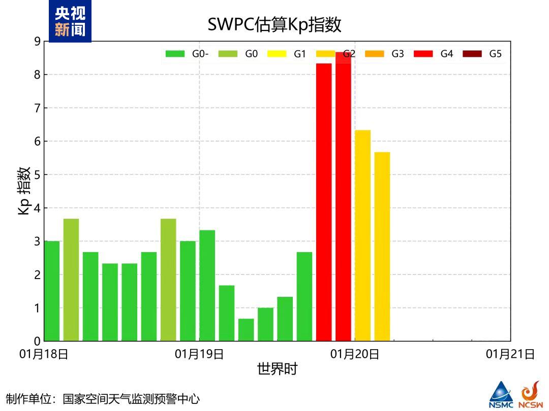 風(fēng)云三號(hào)H星也從太空拍攝到了北半球的極光圖,由此可以直觀(guān)看出哪些區(qū)域出現(xiàn)了極光。根據(jù)太陽(yáng)活動(dòng)情況,中國(guó)氣象局空間天氣監(jiān)測(cè)預(yù)警中心對(duì)未來(lái)一段時(shí)間的空間天氣情況做出了判斷:預(yù)計(jì)未來(lái)三天,太陽(yáng)活動(dòng)水平中等,有可能爆發(fā)M級(jí)以上耀斑;受冕洞和CME共同影響,20日可能出現(xiàn)大地磁暴,21日可能出現(xiàn)小地磁暴,22日地磁活動(dòng)平靜到活躍;受可能發(fā)生的地磁暴影響,電離層天氣可能出現(xiàn)擾動(dòng)。