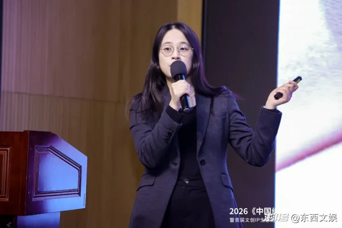 2.東西文娛ACGN組媒體與研究負責人夏清逸在發(fā)言中分享了2026年IP文創(chuàng)產(chǎn)業(yè)風向與展望。她指出,IP經(jīng)濟已成為大賽道,潮玩引領(lǐng)資源涌入,AI催生IP 新載體與形態(tài),深刻改變行業(yè)定價、產(chǎn)品與消費邏輯。超級IP多具備中式創(chuàng)作語境、大眾情感共鳴與本土供應鏈和工業(yè)化支撐,而垂直圈層同樣蘊藏巨大機會,中式二次元、女性向內(nèi)容等以情感共鳴和社群生態(tài)為核心,用戶愿為情感體驗付費。