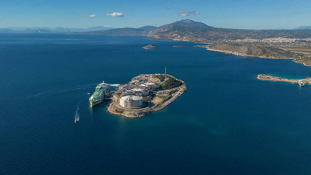 當?shù)貢r間2025年12月1日,希臘,液化天然氣運輸船“BW MAGNOLIA”號在雅典附近的雷維蘇薩碼頭卸載來自美國的液化天然氣。視覺中國 資料圖