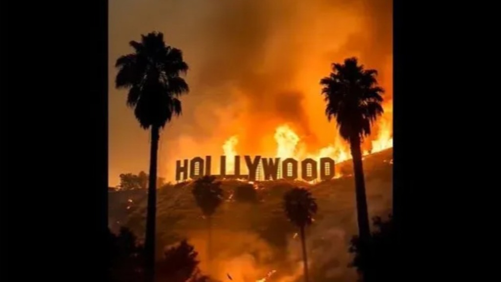 然而,就在消防員與烈火搏斗、居民緊急撤離的真實危機中,一場虛擬的信息災(zāi)難在網(wǎng)絡(luò)上迅速發(fā)酵。一則名為“好萊塢山的標志性白色招牌在大火中被燒毀”的信息在社交媒體中廣為傳播,配有一張描繪字母“HOLLYWOOD”在熊熊烈焰中倒塌的圖片,畫面沖擊力十足——這座象征著美國電影工業(yè)百年榮耀的地標,似乎正被山火吞噬。恐慌、惋惜、質(zhì)疑的情緒在全球網(wǎng)絡(luò)上蔓延。