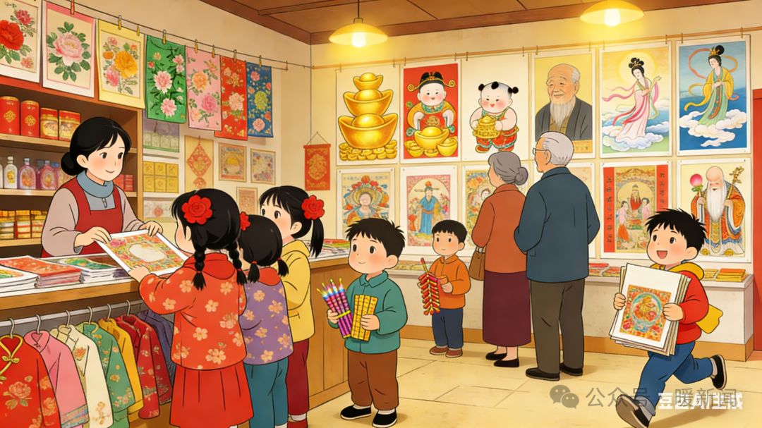 上世紀(jì)七八十年代的人,兒時最喜歡的便是過年。女孩子們盼著新年里的新衣裳、新鞋,還有綴在發(fā)間的紅的粉的新頭花兒;男孩子們則盼得簡單,一串小鞭炮就夠歡喜,再有幾支能在黑夜里迸出滿天星火的禮花炮就更美了。而我最惦記的是鎮(zhèn)上供銷社里那些寄托著美好祈愿的年畫。