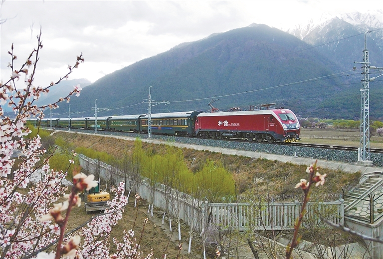 圖為拉林鐵路上運(yùn)行的K6834次列車(chē)(資料圖片)。記者 旦增蘭澤 通訊員 拉巴次仁 攝