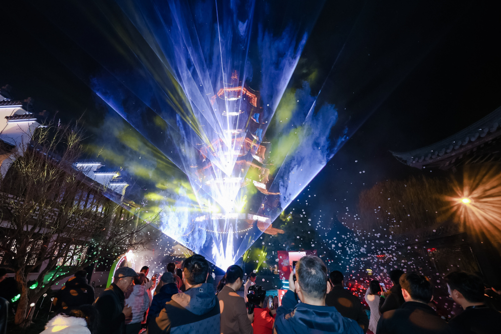 丙午馬年新春將至,由上海市文化和旅游局策劃組織的2026年“樂游上海過大年·品一碗人間煙火”新春非遺系列活動已拉開帷幕。澎湃新聞獲悉,作為上?!奥贸狈沁z璀璨煙火板塊的重磅活動,將圍繞“舌尖煙火”“璀璨煙火”“筆墨煙火”“匠心煙火”四大特色板塊,勾勒上海文旅春節(jié)圖景。作為本次“璀璨煙火”板塊的啟幕之地,泗涇古鎮(zhèn)近日化身光影舞臺,安方塔身披“光繪泗涇”數(shù)字光影秀,璀璨奪目,瞬間點(diǎn)燃了古鎮(zhèn)的節(jié)日氛圍。