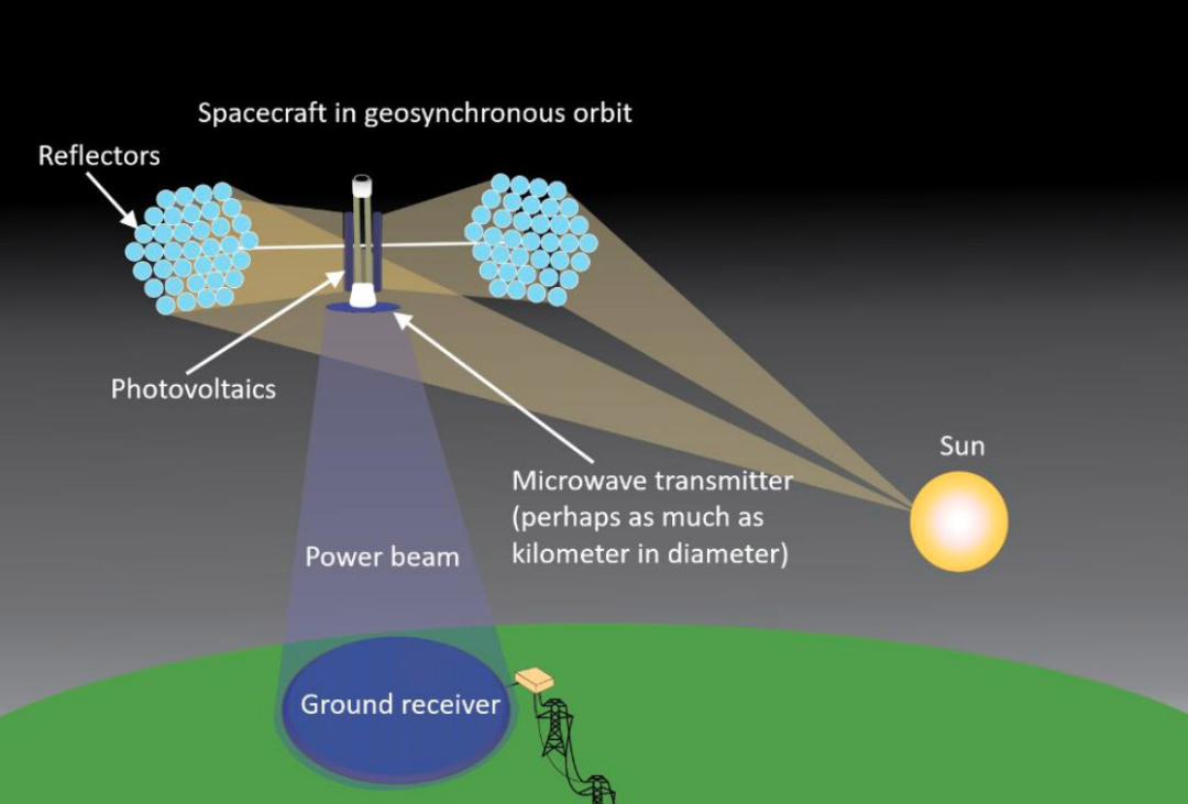 早在上世紀(jì)70年代,歐美科學(xué)界就提出在近地軌道或地球同步軌道部署超大規(guī)模太陽能陣列,在太空中持續(xù)發(fā)電,再通過微波或激光的方式把能量傳回地面。
