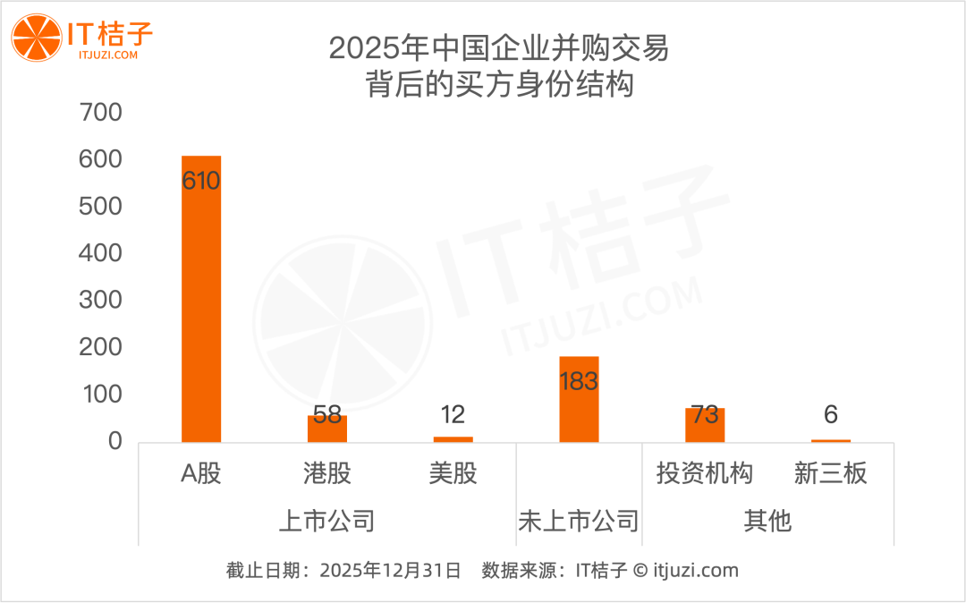從 2025 年的買方結(jié)構(gòu)來看,產(chǎn)業(yè)資本,特別是 A 股上市公司,是并購(gòu)市場(chǎng)當(dāng)之無愧的主導(dǎo)力量。