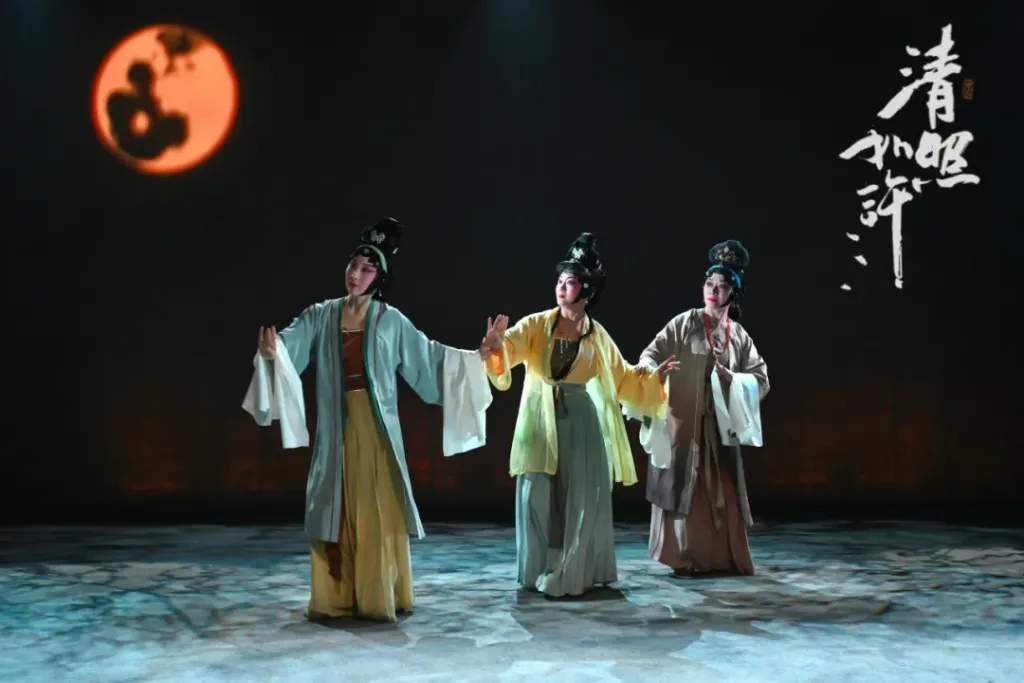 有趣的是,今年還有一部參演劇目也是“同款”題材。京劇《清照如許》以李清照的人生經(jīng)歷為藍(lán)本,采用意識流敘事,讓少女、中年與老年三位“李清照”同臺對話,展現(xiàn)其在婚姻、家國、名譽(yù)與自我抉擇中的生命軌跡。來自中國戲曲學(xué)院的教授、梅派傳人張晶和來自國家京劇院的鞏麗娟、宋若瑄分別扮演老年、少年和中年李清照。
