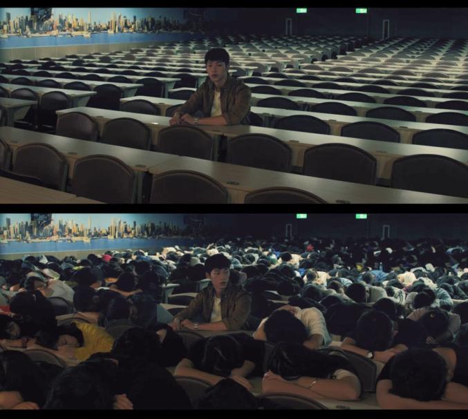 夢境是一個人的內(nèi)心反應(yīng),阿豪雖然一直身處擁擠的人群中,但他自己卻感覺十分孤獨,仿佛周圍空無一人,只有他自己。